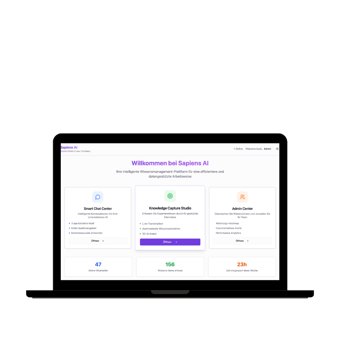 Sapiens AI ist eine private, KI-gestützte Wissensdatenbank, die Unternehmen hilft, Informationen schneller zu finden, Expertenwissen zu sichern und Wissenslücken zu schließen.